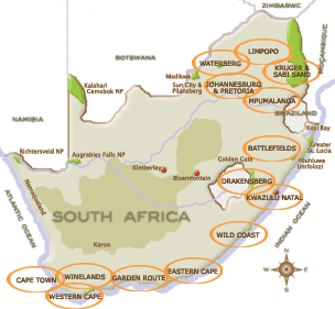 Click on the area of interest for hotel and lodge accommodation in South Africa