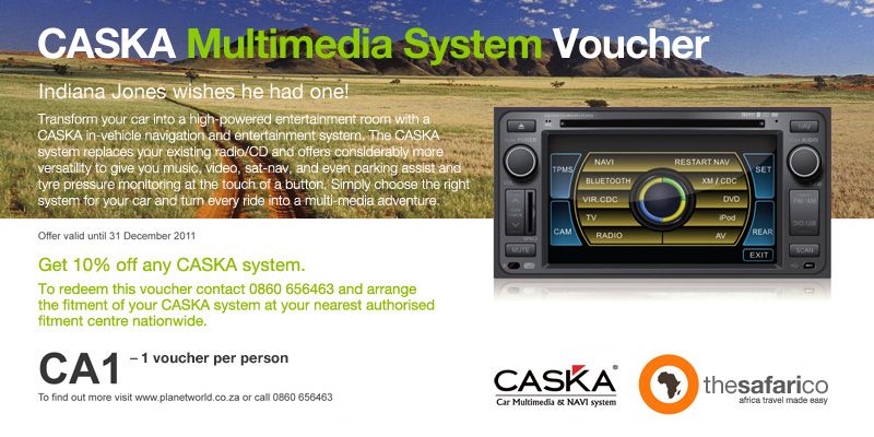 This special offer is available through Planet World, the official distributors of CASKA. Contact them on 0860 656463 to get your vehicle specific multimedia system and installation done.