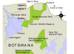 areas of Botswana's Moremi Game Reserve, the Okavango Delta and