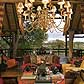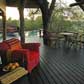 Lounge and timber-deck dining areas overlooking the Sand River, bar